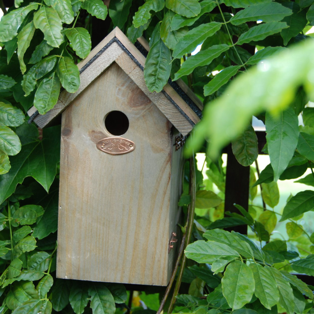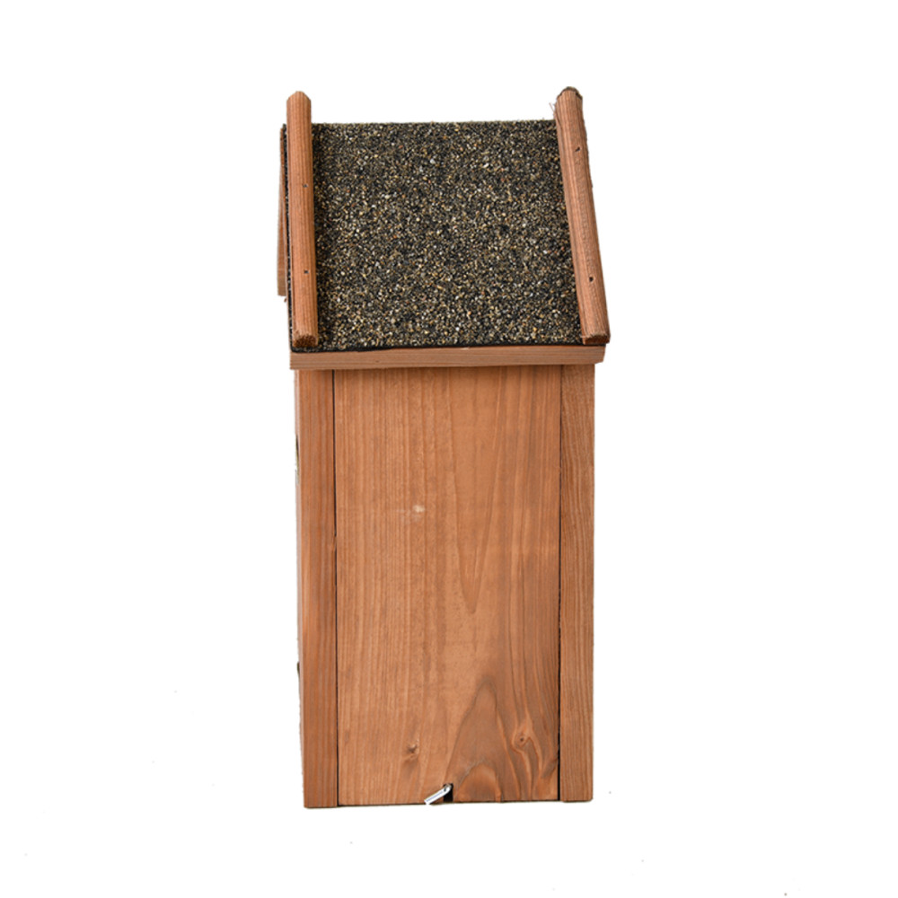 Hagyományos, vidéki hangulatú madárodú, amely ideális fészkelőhelyet biztosít kisebb testű énekesmadarak számára. A természetes kialakítás és a bitumenes tető egyaránt hozzájárul a tartóssághoz és a megfelelő védelemhez az időjárással szemben.