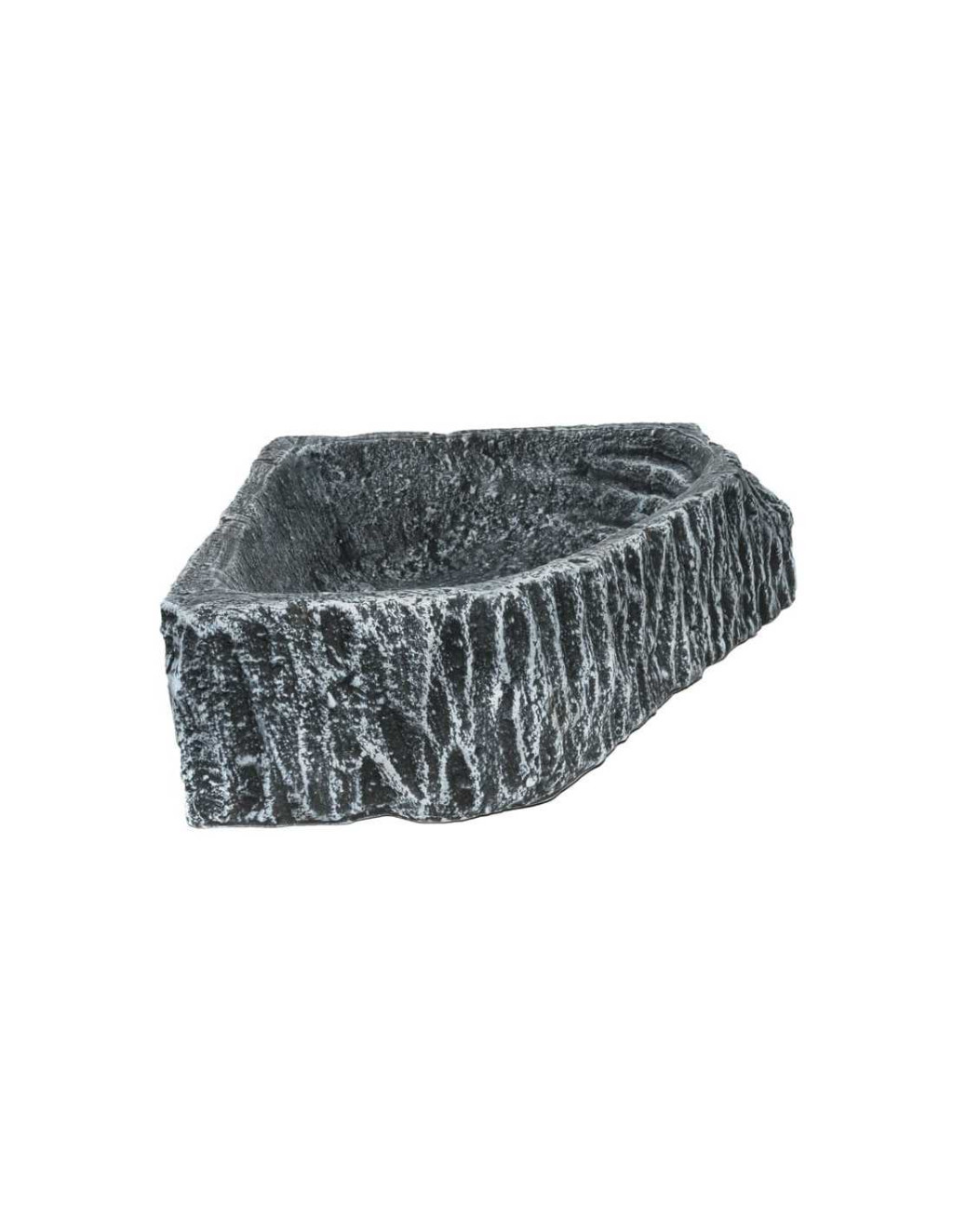Nagy méretű, mély kerámia tál terráriumi hüllők számára. Vízzel feltöltve itatóként, vagy fürdőtálként funkcionál, de a páratartalmat is segít fenntartani. Textúrája és színe által bármilyen környezetbe jól illeszkedik. Sarok formájú, kevesebb helyet igényel. Terráriumi párásító használatához is ideális.