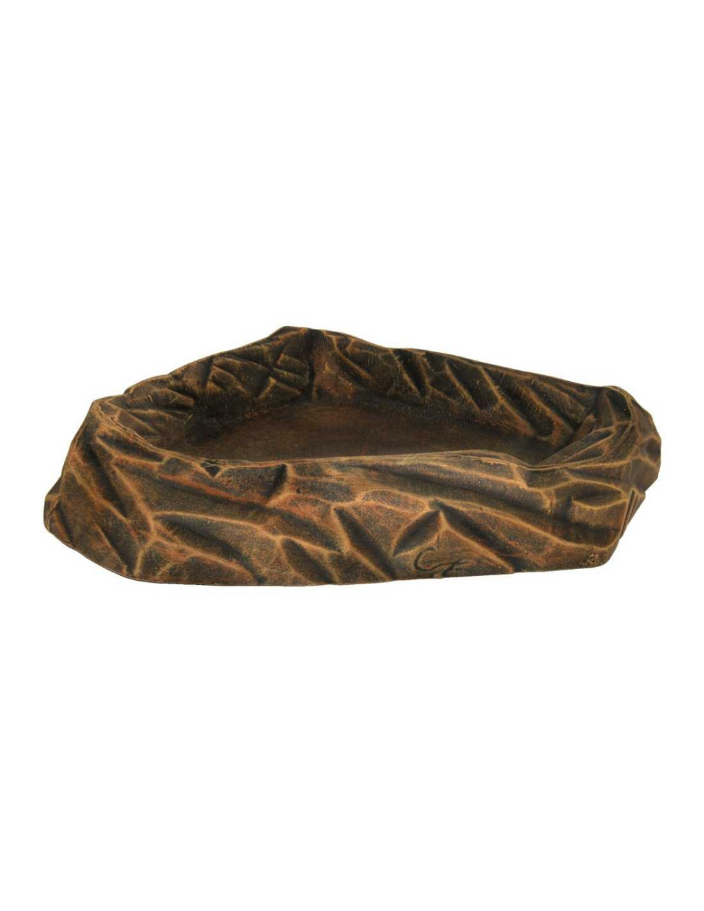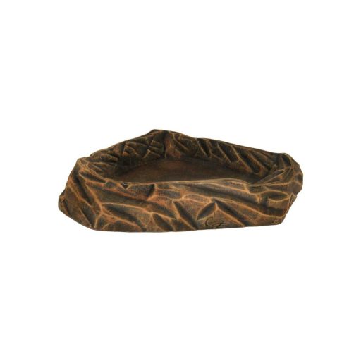 Kerámia etető-itató saroktálka terráriumba. Kis méretű edény, melyből a hüllők, kétéltűek kényelmesen táplálkozhatnak vagy ihatnak. Színezése és formája által jól illeszkedik a környezetbe, diszkrét kiegészítő. Sarokba helyezhető, így kisebb a helyigénye.