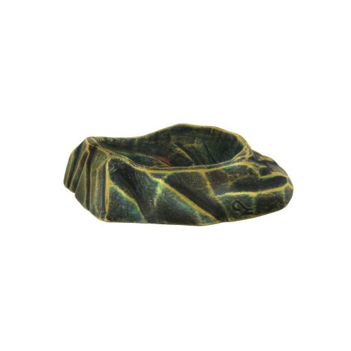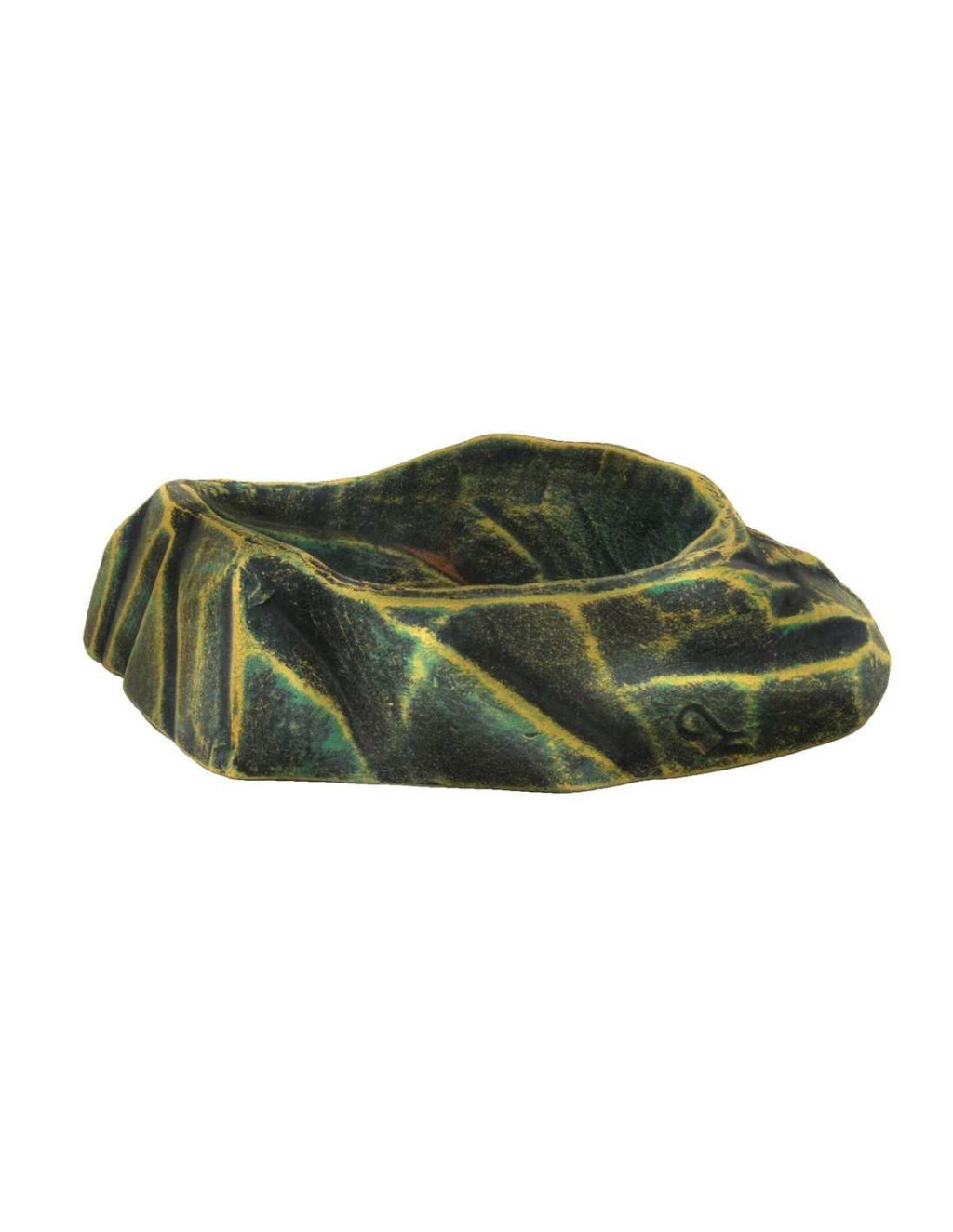 Kerámia etető-itató tálka terráriumba. Kis méretű edény, melyből a kisebb hüllők, kétéltűek kényelmesen táplálkozhatnak vagy ihatnak. Színezése és formája által jól illeszkedik a környezetbe, diszkrét kiegészítő.