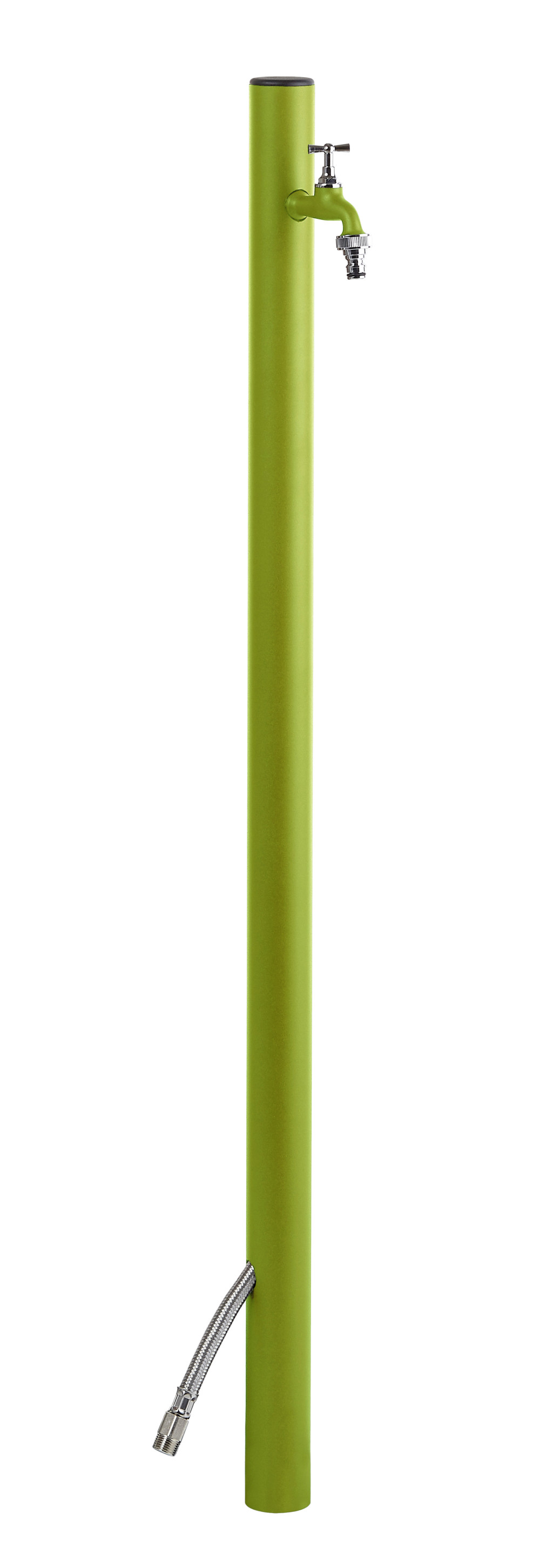 A porfestett alumínium test korrózióálló és időjárásálló, így hosszú távon megbízható kültéri használatot biztosít. A talajba történő telepítés egyszerű, a mellékelt sárgaréz csap és tömlőtartó pedig azonnali használatot tesz lehetővé.