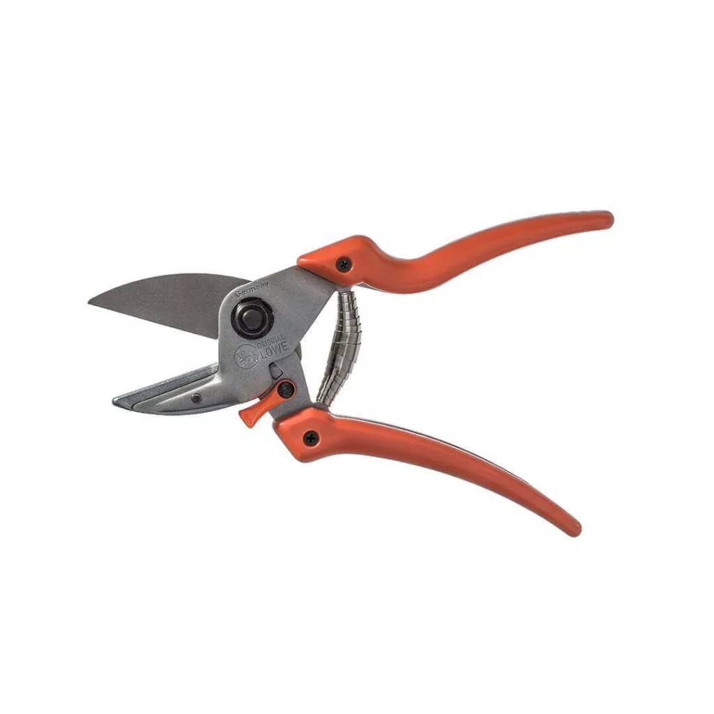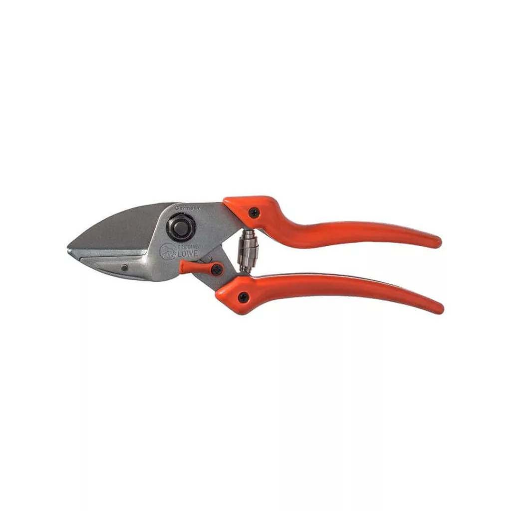 A Löwe 6.107 rávágós metszőolló könnyen cserélhető pengével, hajlított nyéllel A metszőolló egyenletesen terheli a kezet, így a munka kevésbé fárasztó. Nem roncsolja a növényt. A vágás szélessége állítható, és a pengék könnyen, gyorsan cserélhetők. A hajlított nyélnek köszönhetően optimális kis kezűek részére