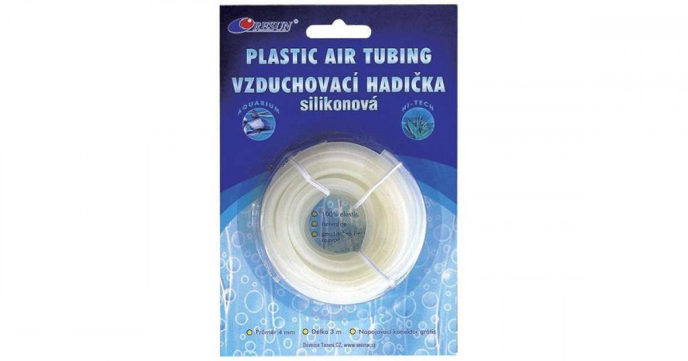 Színtelen szilikon levegőcső kerti tavi és akváriumi levegőztetéshez. Szabványos 4/6mm átmérőjű cső. Hosszúsága 3 méter, 1db levegőcső toldót tartalmaz.