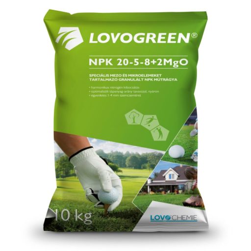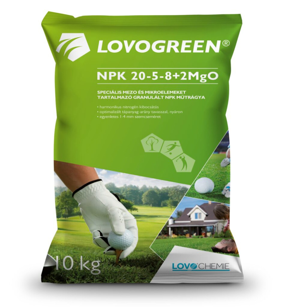 A Lovogreen gyeptrágya speciális mezo- és mikroelemeket tartalmazó granulált NPK műtrágya, amely kiválóan alkalmas közepesen és erősen igénybe vett gyepfelületek trágyázására. Ideális választás sportpályák – például futballpályák és golfpályák – valamint díszgyep felületek tápanyag-utánpótlására.