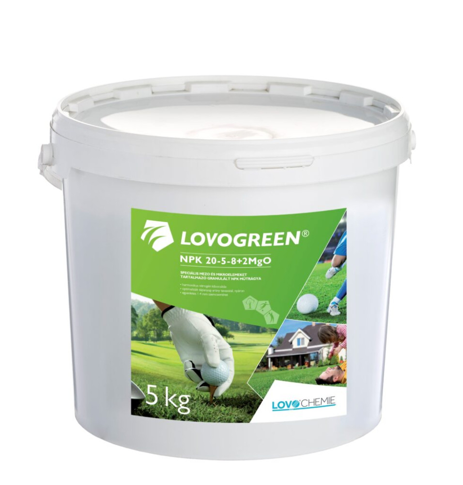 A Lovogreen gyeptrágya speciális mezo- és mikroelemeket tartalmazó granulált NPK műtrágya, amely kiválóan alkalmas közepesen és erősen igénybe vett gyepfelületek trágyázására. Ideális választás sportpályák – például futballpályák és golfpályák – valamint díszgyep felületek tápanyag-utánpótlására.