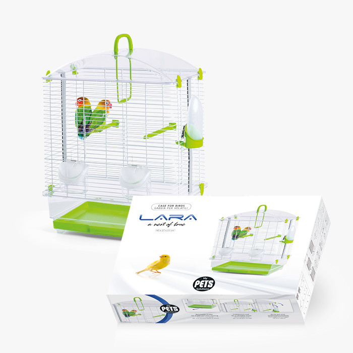 My Pet Solutions LARA madárkalitka. Átlátszó plexi aljtálcával és tetővel szerelt kalitka kisebb díszmadarak tartásához. A masszív plexi elemek nem csak tartósak, de teljes belátást is biztosítanak a kalitkába. A termék tartalmazza a legszükségesebb kiegészítőket, így madárhintát, ülőrudakat etető és itató edényeket. Az alul kihúzható tálca megkönnyíti a kalitka tisztán tartását.