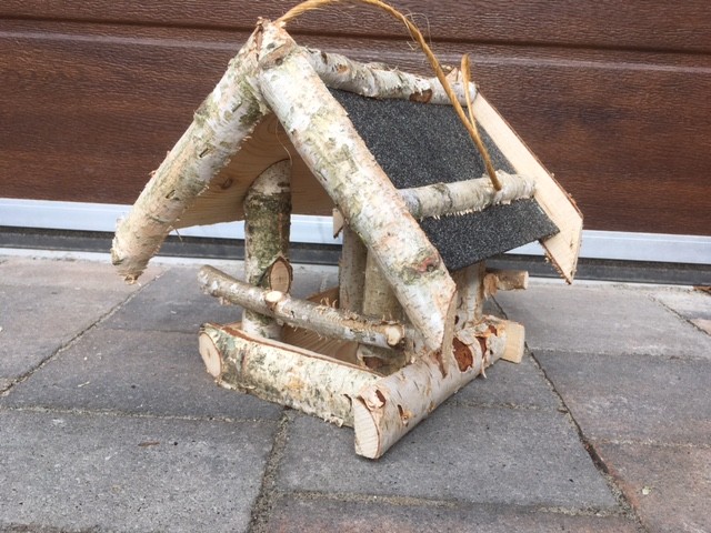 Madáretető – nyírfa kivitel bitumenes tetővel, akasztható