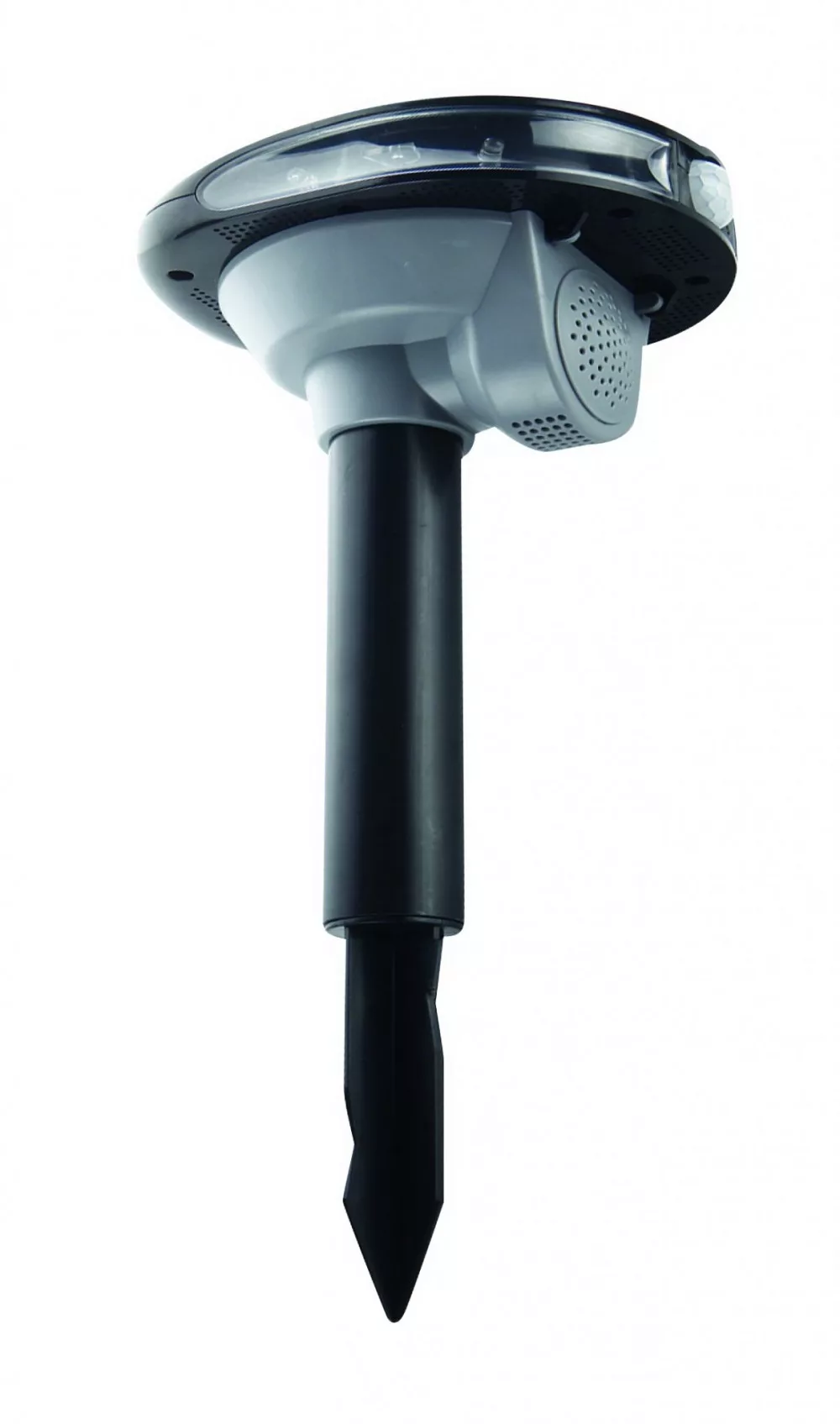 - 4 darab újratölthető AA akkumulátorral működik az eszköz (csomagban), vagy a mellékelt adapterrel. A napelem visszatölti az akkumulátorokat.