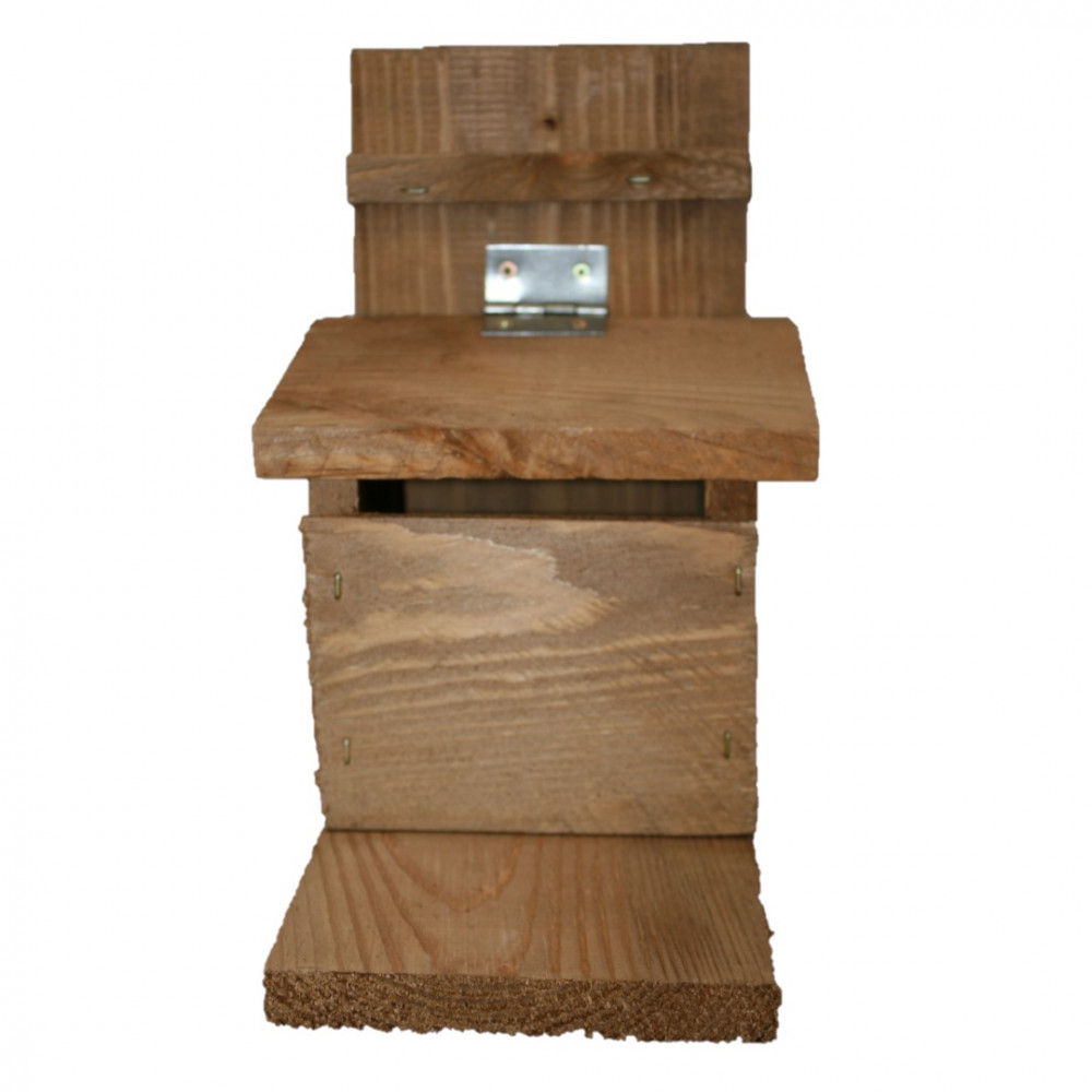 - A zsanérozott könnyű fenyőfából készült tetőt a mókusok felemelik és így hozzájutnak a számukra kihelyezett csemegéhez.