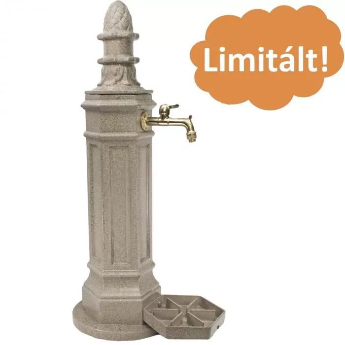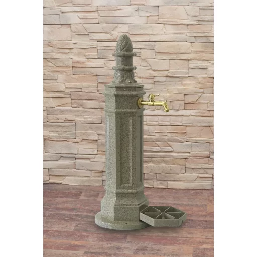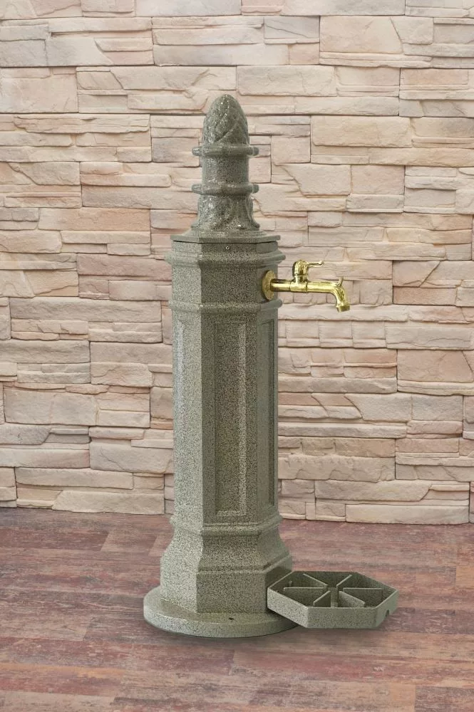A Pan Italia Róma álló kerti kút elegáns megjelenésű, időjárásálló vízvételi megoldás kertbe, udvarra vagy akár beltéri használatra is. Gránit színével klasszikus hangulatot teremt, miközben masszív kialakítása hosszú távú, megbízható használatot biztosít.