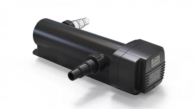 - A ház belseje spirális, így az átáramló tóvíz hosszabb ideig van kitéve az UV-C fény hatásának.