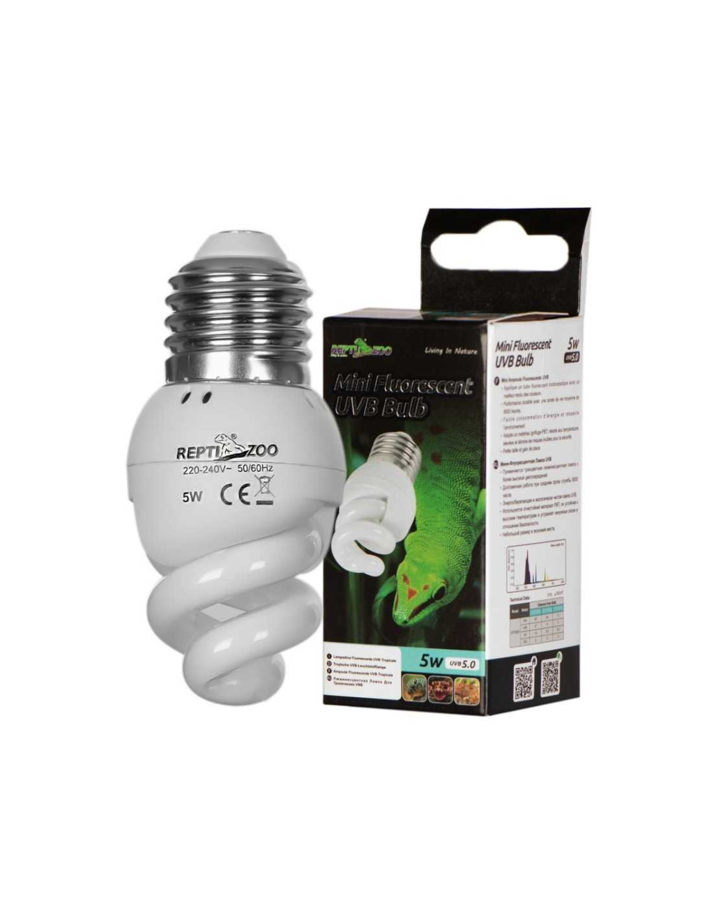 Repti-Zoo Mini UVB 5.0 terrárium izzó. Spirális E27 kompakt izzó stabil hullámú UVB sugárzással. Az UVB sugárzás serkenti a D3 vitamin termelődést és kalcium felszívódást, így a terráriumban tartott hüllők csontozata egészségesen fejlődhet. Az 5% UVB sugárzás a trópusi erdőkből származó hüllőkhöz javasolt. Emellett UVA sugárzása serkenti az étvágyat, természetes viselkedést, és szaporodási kedvet.