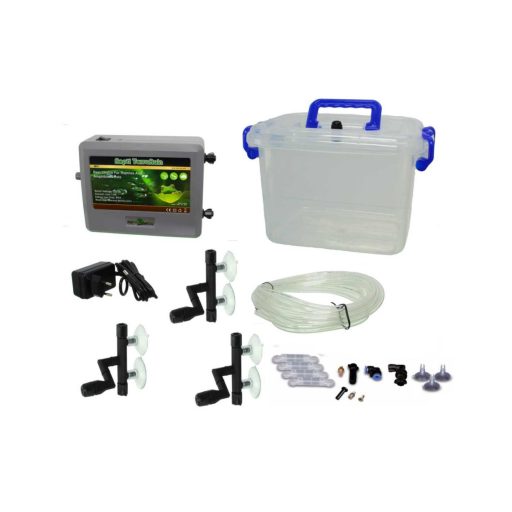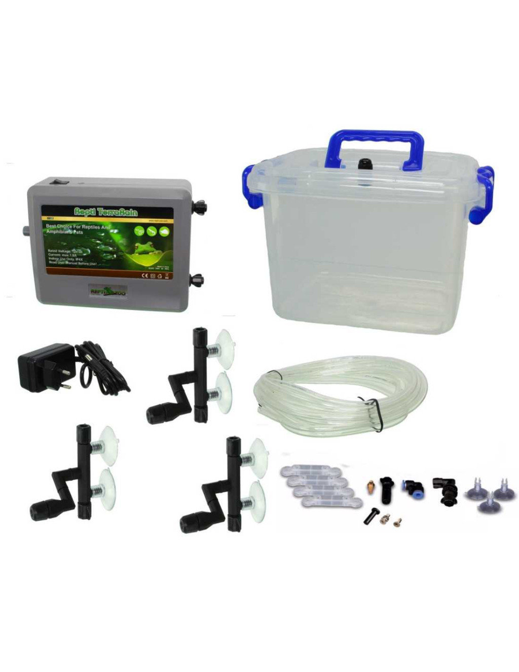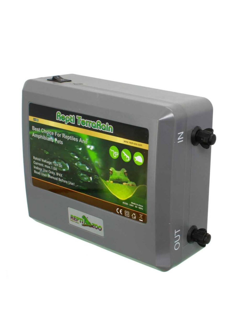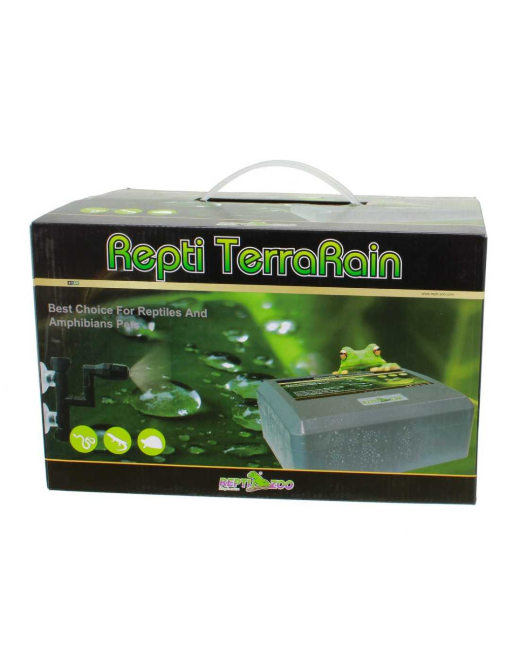 Repti-Zoo TerraRain terráriumi automata vízpermetező, párásító. Számos alkatrészével és nagy űrtartalmú tartályával szinte bármekkora terráriumban esőerdőhöz hasonló környezetet teremthetünk vele trópusi hüllőink számára. A bejuttatott vízmennyiségtől a vízpermet finomságáig mindent az igényeknek megfelelően állíthatunk be rajta. Szórófejeit bármilyen felületen rögzíthetjük. Legyen szó nedvesítésről vagy párásításról, ezzel a berendezéssel kivitelezhető.