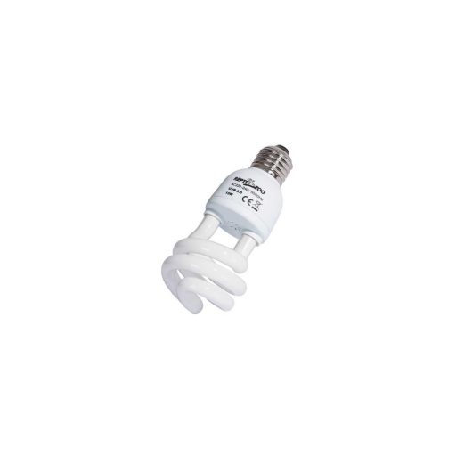Repti-Zoo Tropical UVB 5.0 terrárium izzó. Spirális E27 kompakt izzó stabil hullámú UVB sugárzással. Az UVB sugárzás serkenti a D3 vitamin termelődést és kalcium felszívódást, így a terráriumban tartott hüllők csontozata egészségesen fejlődhet. Az 5% UVB sugárzás a trópusi erdőkből származó hüllőkhöz javasolt. Emellett 30% UVA sugárzása serkenti az étvágyat, természetes viselkedést, és szaporodási kedvet.
