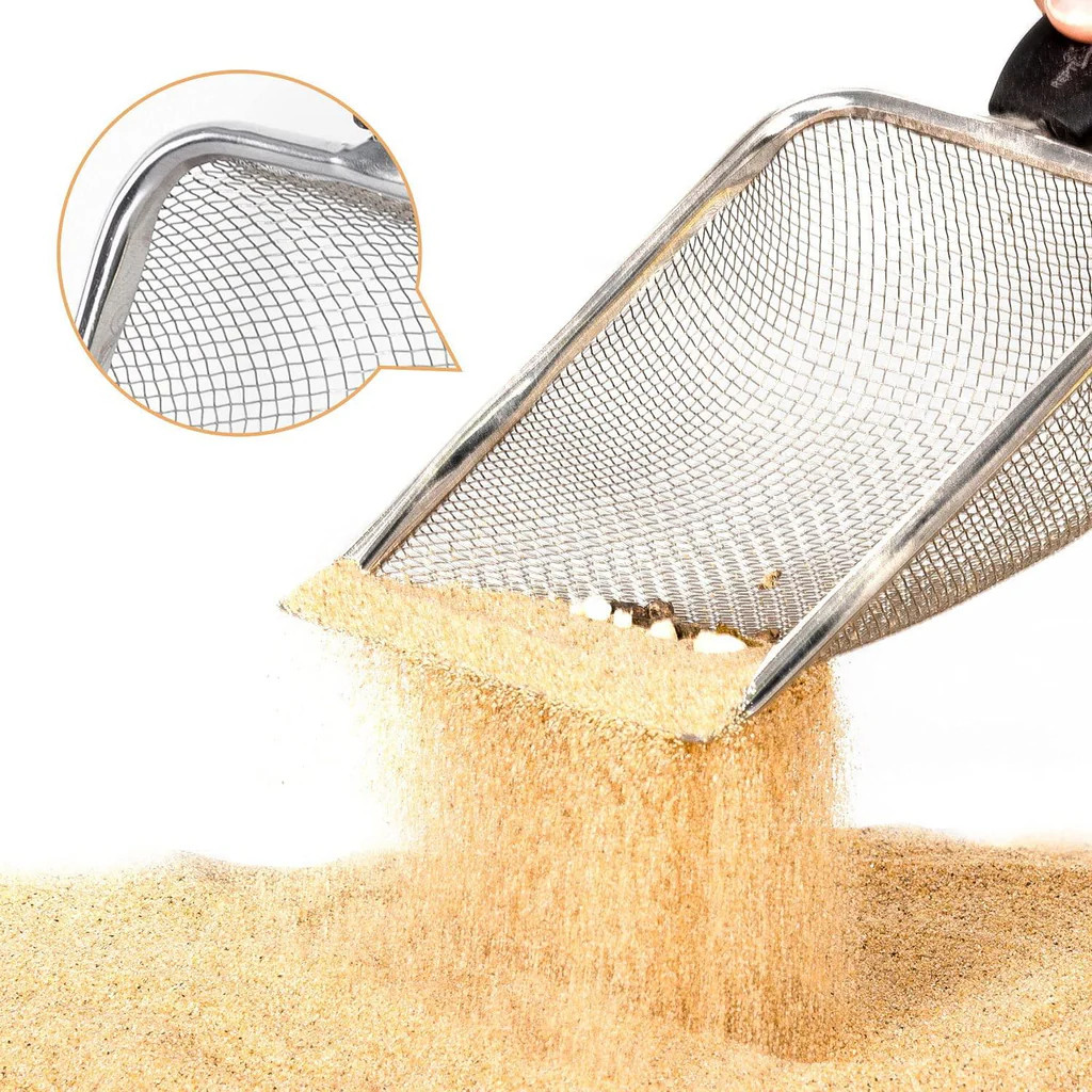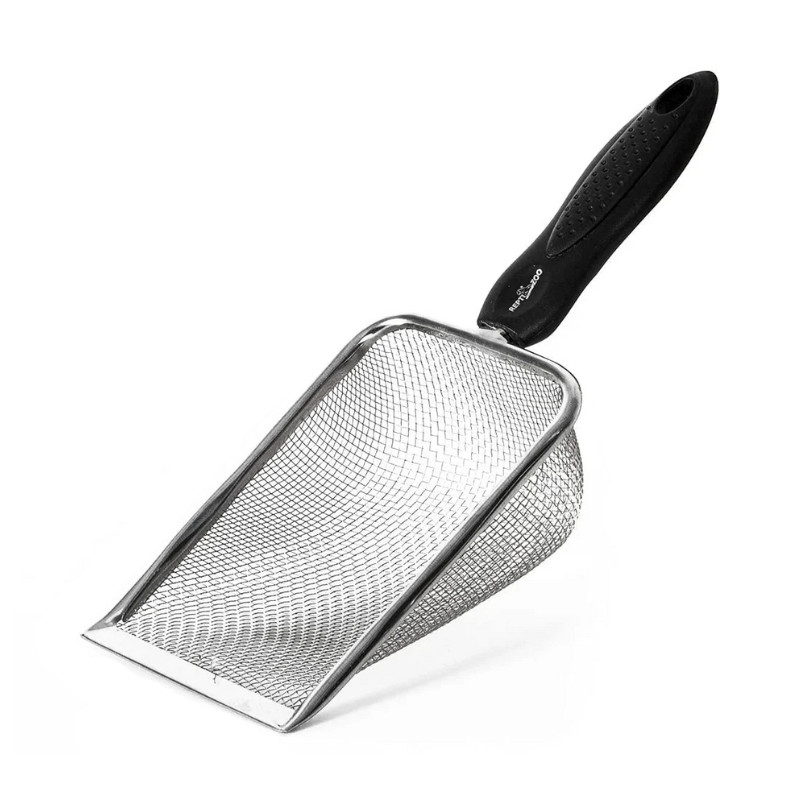 Repti-zoo alomlapát rozsdamentes acél hálóból ergonomikus nyéllel, elsősorban terrarisztikai felhasználásra, de más kisállat alomtisztítására is alkalmas.