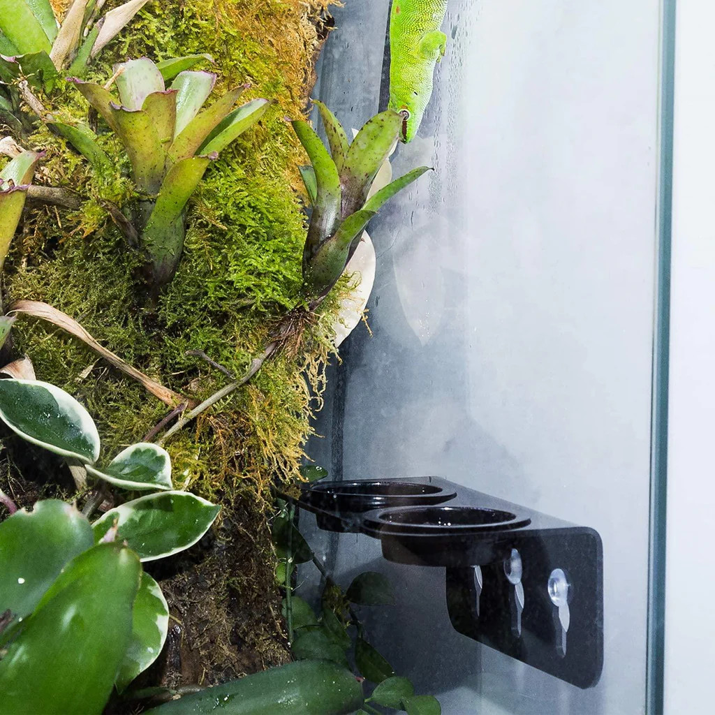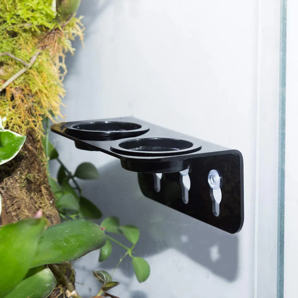 Repti-Zoo terráriumi műanyag tálka tapadókoronggal rögzíthető tartóval. A terrárium üvegfalához tapasztható, így a lombok között élő és táplálkozó hüllők könnyen hozzáférhetnek. A tál a tartóból kivehető, így az újratöltés, tisztítás könnyen kivitelezhető. Két tálkás változat.