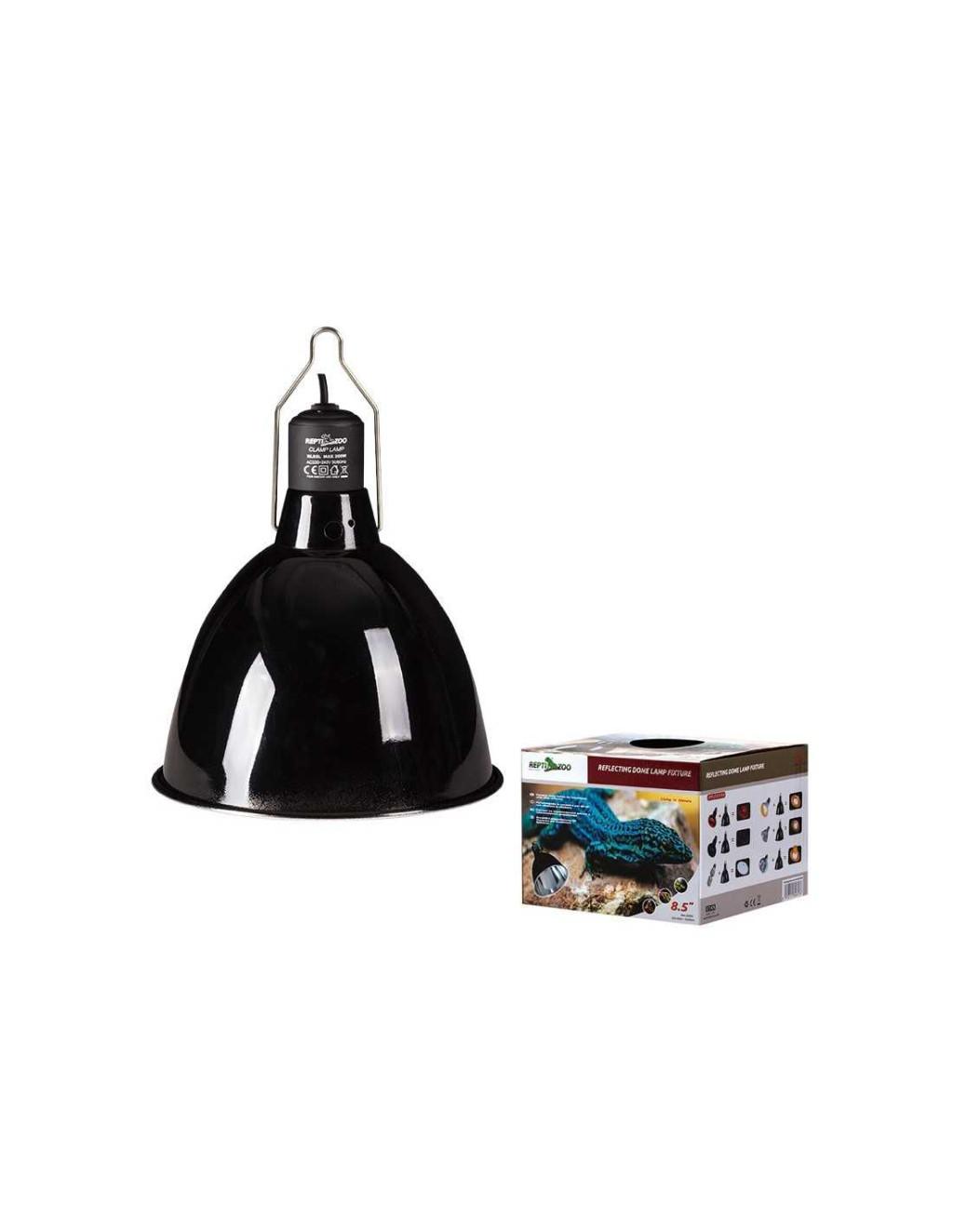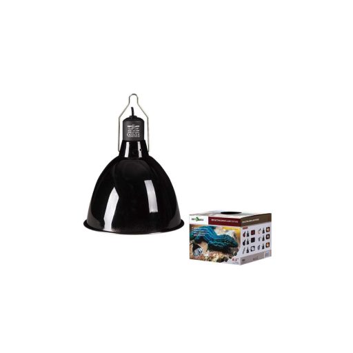 Repti-Zoo terrárium lámpabura kerámia izzófoglalattal. Minőségi alumíniumból készített lámpabura, melynek erősen fényvisszatükrőző belseje a benne lévő izzó teljes fényét a terrárium felé irányítja. Maximalizálja a fényviszonyokat, és a különböző ultraviola sugarak erősségét. Akasztójával könnyen rögzíthetjük, elektromos vezetékére kapcsoló van felszerelve. A kerámia foglalat és a szellőzőlyukak által jól bírja az izzó által generált hőhatásokat. Max. 200W-os E27 típusú izzóval használható. Átmérője 21cm (8,5"), magassága 25cm.
