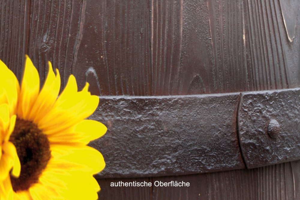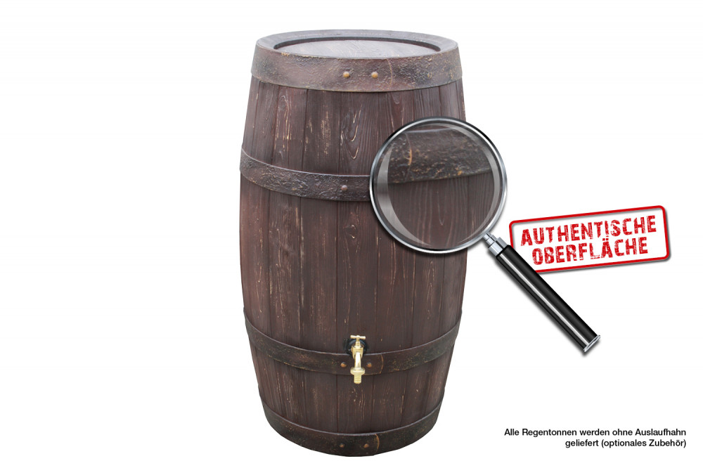 Ennél a terméknél is az eredetiséget tartottuk szem előtt. Az eredeti minta egy Barrique tölgyhordó volt. Az abroncsokhoz egy Bajor söröshordó szolgált mintaként. Ezek jóval durvábban vannak megmunkálva, és a hordónak rusztikus kinézetet adnak. A Barrique esővízgyűjtő egy ¾“-os csapcsatlakozóval van ellátva, amelybe egy kerti csap csavarható be. Az oldalt elhelyezett leeresztő nyílás a fagyszezon előtti teljes leengedéshez vagy két tartály összekapcsolására alkalmas. Gyerekzárral ellátott fedele van. A kerti csap nem tartozék!