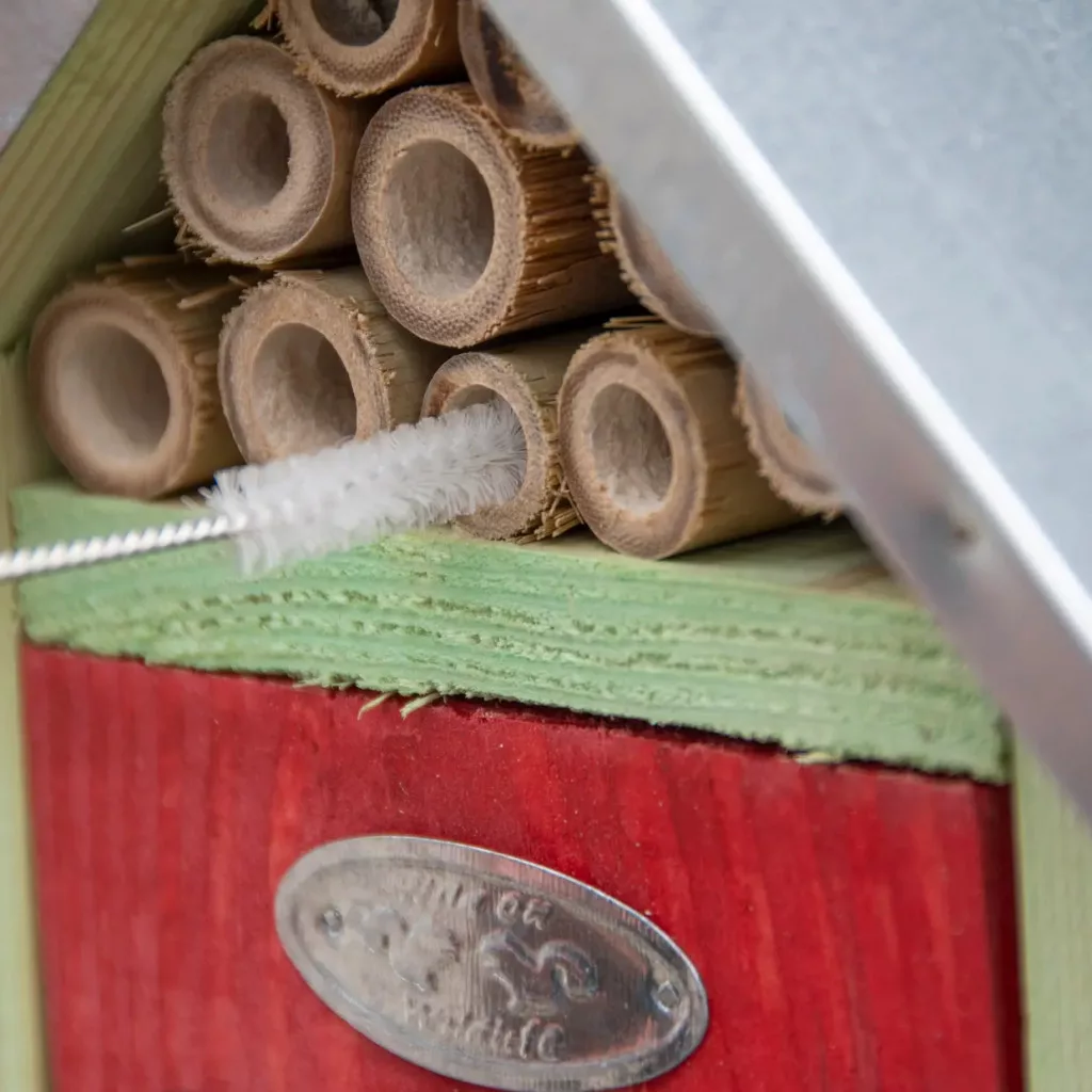 Napos, szélvédett helyre helyezd ki, például falra vagy kerítésre. A piros rekeszt érdemes finom szalmával megtölteni a teleléshez. A bambuszcsöveket kihelyezés előtt tisztítsd meg, mivel a méhek a tiszta járatokat részesítik előnyben.
