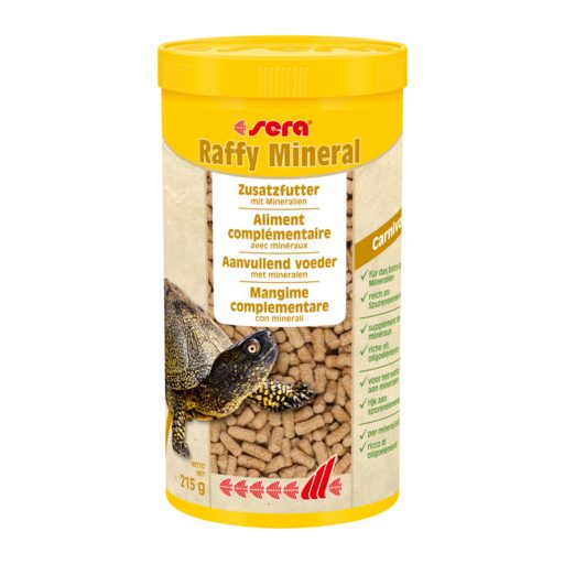 Sera Raffy Mineral hüllő eleség hüllő eleség ragadozó hüllők etetéséhez. Gondosan előállított lebegő pálcikákból álló kiegészítő táplálék húsevő hüllők, például mocsári teknősök számára. Rengeteg nélkülözhetetlen ásványi anyagot, vitamint és nyomelemet tartalmaz. Segít megelőzni olyan a hiánybetegségeket, amelyek bizonyos friss gyakran előfordulhatnak, ha csak bizonyos friss eleségekkel etetjük állatunkat. Támogatja az egészséges fejlődés, a megfelelő csont- és páncélnövekedést, valamint növeli az élénkséget és a betegségekkel szembeni ellenálló képességet. Kiszerelés 1000 ml, nettó 250 g.