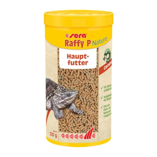 Sera Raffy P Nature hüllő eleség. Lebegő, kíméletes módszerrel előállított pálcikákból álló alapeledel húsevő hüllők, például mocsári teknősök számára. Állati és válogatott növényi összetevőket tartalmazó, kiegyensúlyozott, ízletes összetétel. Könnyen emészthető fehérjék és szénhidrát, valamint nagy mennyiségű Omega zsírsav jellemzi. Biztonságosan fedezi a húsevő hüllők alapvető igényeit, támogatja egészséges fejlődésüket és élénkségüket. Kiszerelés 1000 ml, nettó 220g.