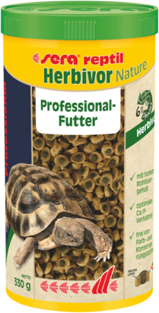 Sera Reptil Professional Herbivor Nature eleség kedvtelésből tartott növényevő hüllők etetéséhez. Lebegő, bicolor granulátumokból álló kiegészítő táplálék. Különféle nyersrostokban gazdag, és tartalmazza a természetes táplálkozási spektrumnak megfelelő gyógynövények keverékét, valamint kisebb mennyiségben a szintén szükséges, jó minőségű fehérjéket és zsírokat is. Fontos vitaminokban, ásványi anyagokban és algákban gazdag, így erősíti az állatok ellenállóképességét. Az optimális kalcium-foszfor arány az egészséges csontozat és páncél növekedésének alapja. Az alacsony hőmérsékleten történő extrudálás által a létfontosságú alapanyagok optimális mértékben megmaradnak. Színezékek és tartósítószer nélkül. Kiszerelés 1000 ml, nettó 330 g.
