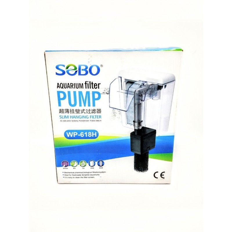 Sobo WP-618H akváriumi akasztós szűrő. Az akvárium falára akasztható, szabályozható teljesítményű szűrő, felszínszűréssel kiegészítve. A víz felszín mozgatása által ideális keringést és oxigéndúsítást is végez. Motorja csendes üzemelésű, szűrőanyag lapjai könnyen kivehetőek.