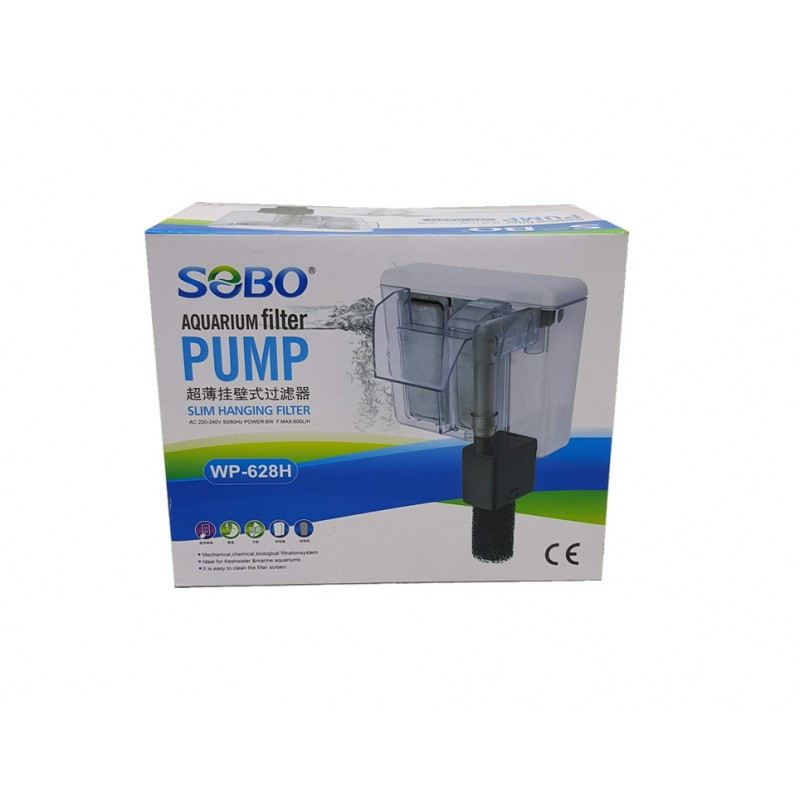 Sobo WP-628H akváriumi akasztós szűrő. Az akvárium falára akasztható, szabályozható teljesítményű szűrő, felszínszűréssel kiegészítve. A víz felszín mozgatása által ideális keringést és oxigéndúsítást is végez. Motorja csendes üzemelésű, szűrőanyag lapjai könnyen kivehetőek.