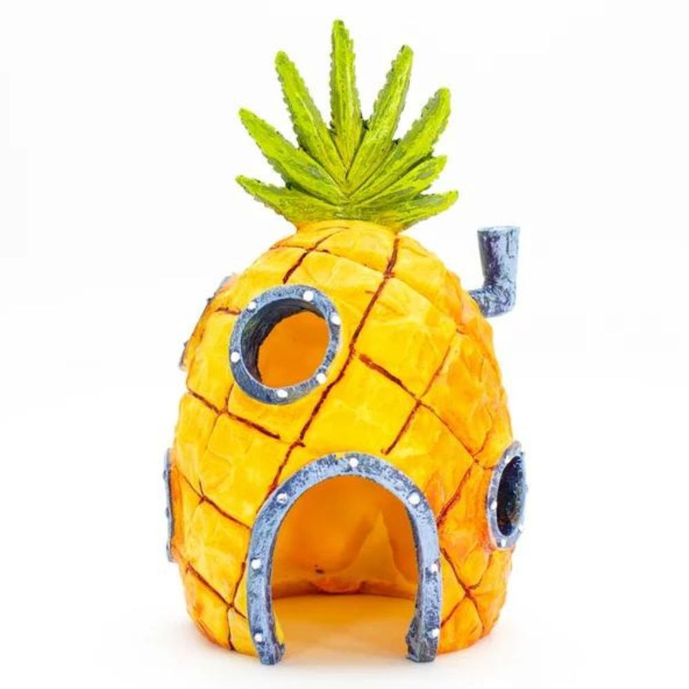 Szép kidolgozású, színes műgyanta dekoráció akváriumba. A népszerű rajzfilm-sorozat, a SpongyaBob inspirálta dísztárgy színárnyalatai és különleges kinézete igazán meseszerű látványvilágot kölcsönöz az akváriumnak, akár gyermekünk számára, akár saját örömünkre rendezzük azt be. Üreges kialakítása búvóhelyet nyújthat a kisebb talajlakó díszhalak és rákfélék számára. Akváriumon kívüli díszítésre is alkalmas, pl. terrárium dekor, szobadísz, dioráma stb.