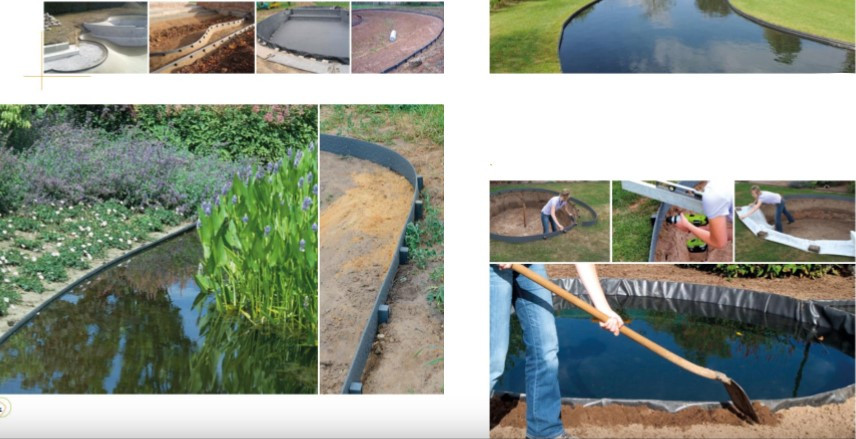 Hajlékony szegély kerti tavak peremének tökéletes szintezésére.
