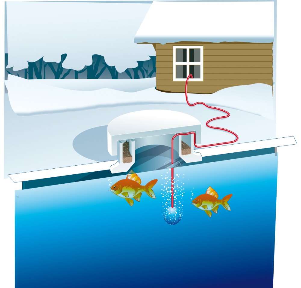 Megakadályozza a tavak vízfelszínének teljes befagyását. Így biztosítva télen, hogy a tóból a jégpáncél alatt felgyülemlő gázok távozni tudjanak. A légpumpának köszönhetően folyamatos oxigén beoldást biztosít, ami egyben meggyorsítja a gázok távozását is.