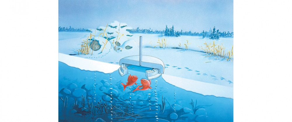 Az Ubbink® Basic® jégmentesítő eszközök segítenek megakadályozni, hogy kerti tava befagyjon a tél folyamán. A tó vizét továbbra is oxigénnel látják el, amely meggátolja a vízi növények rothadását kísérő mérgező gázok kialakulását a jégréteg alatt.