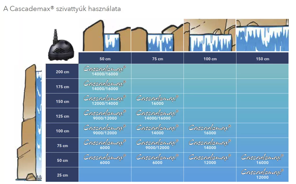 Az Ubbink CascadeMax 12000 szivattyú nagy teljesítményű, energiatakarékos megoldás kerti tavak szűrőrendszereinek és vízjátékainak működtetésére. Kifejezetten szűrőtáplálásra és mesterséges patakokhoz tervezték, így nagy mennyiségű, szennyeződéseket is tartalmazó víz szállítására is kiválóan alkalmas.