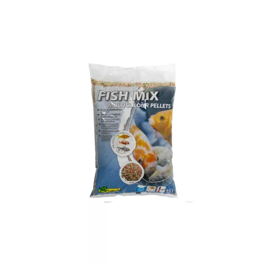 Az Ubbink Fish Mix® - Multicolour Pellet három teljes értékű haleledel keveréke, amelyek 4 mm-es, piros, fehér és zöld színű lebegő pelletek. Tápanyagokkal, vitaminokkal, nyomelemekkel és spirulinával. Ideális shubunkinok, kárászok, sarasák stb. etetésére. A táplálék könnyen emészthető, alacsony sűrűségű és alacsony energiaszintű, így tetszés szerint etetheti a halat. Kiszerelése 15 literes tasakba.