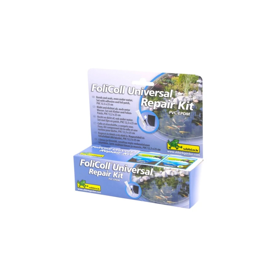Az Ubbink Folicoll ragasztó és tömítőanyag javítókészlet 75 g PVC és EPDM alapanyagú tófóliák gyors és szakszerű javítására készült. Ideális megoldás kisebb lyukak, repedések, vágások és sérülések helyszíni javítására kerti tavaknál, dísztavaknál és víztározóknál. A speciális összetétel rugalmas, mégis erős kötést hoz létre, amely vízálló és ellenáll a folyamatos vízterhelésnek. A javítókészlet használata nem igényel speciális szerszámokat, ezért karbantartási munkákhoz és gyors beavatkozásokhoz is kiváló választás. A 75 g-os kiszerelés elegendő több kisebb javítás elvégzéséhez, így gazdaságos megoldást kínál mind kivitelezők, mind viszonteladók számára. A termék PVC és EPDM fóliákhoz egyaránt alkalmazható, megfelelő felület-előkészítés mellett megbízhatóan csökkenti a szivárgás kockázatát és hozzájárul a tófólia élettartamának meghosszabbításához.
