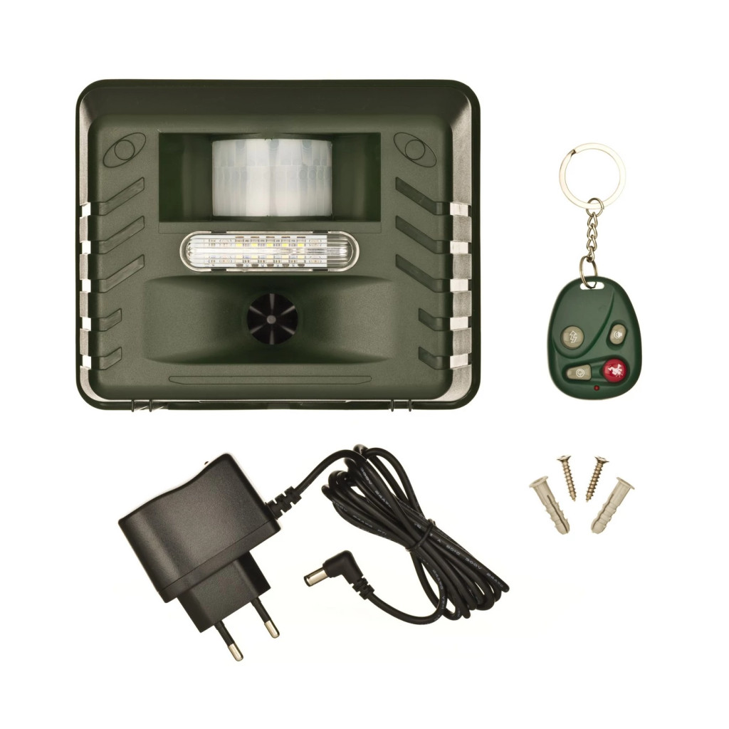 Ártalmatlan riasztó minden állatfajta és nemkívánatos élőlény ellen, amely akár három művelettel ijeszti el a behatolókat: ultrahanggal,