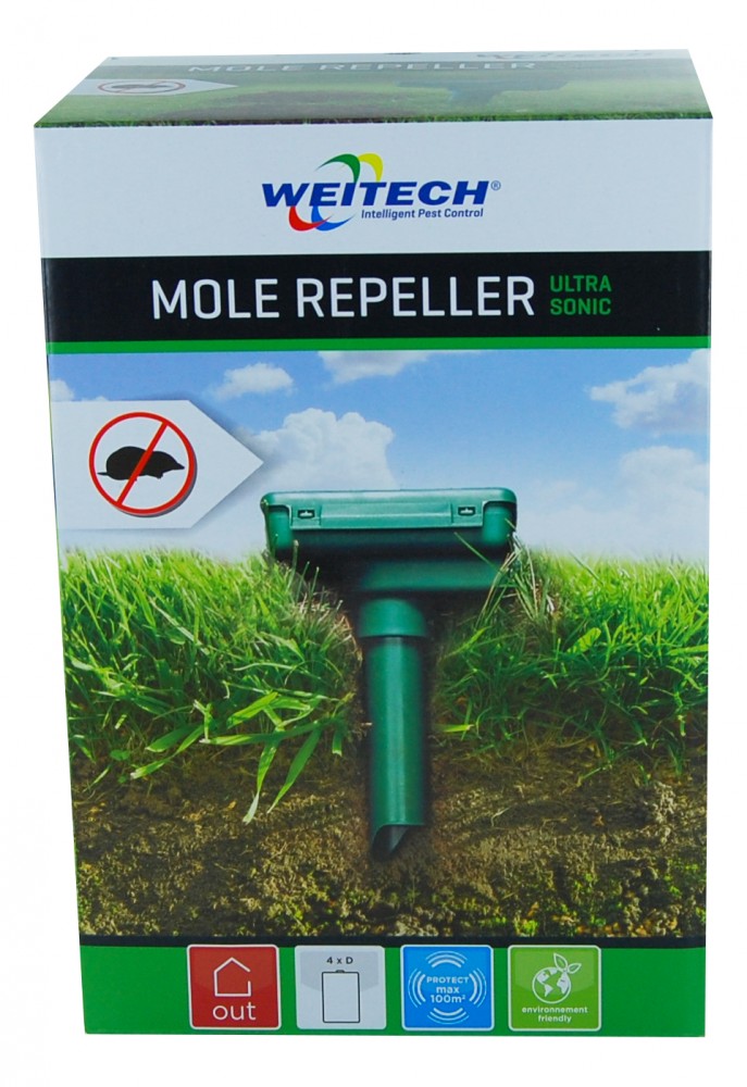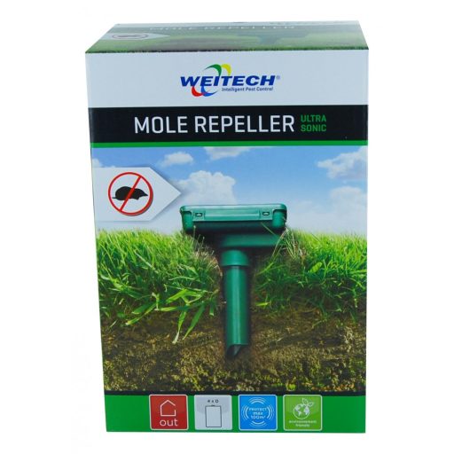 Ez a vakondriasztó készülék elemmel működik; hanghullámokat és rezgéseket használ a kártékony rágcsálók (vakondfélék, stb.) távol tartására. A hanghullámok irritálják őket, veszélyérzetet keltenek és a hatóterület elhagyására kényszerítik őket. A készülék 5 másodpercenként, 1 másodpercig olyan hangjelet bocsát ki, amely rezgéseket kelt a talajban.