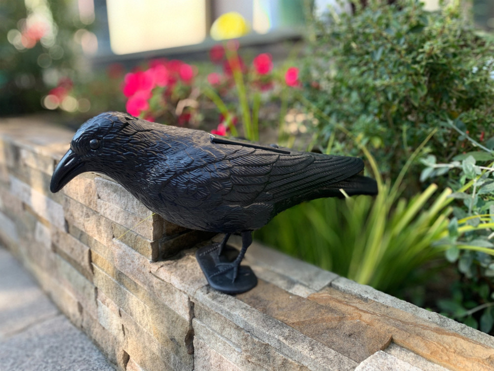 A mozgásérzékelő 5-8 méteres távolságból érzékeli a mozgást. A varjú zajt kelt, hogy elriassza a nem kívánt kártevőket. A napelemnek köszönhetően nincs szükség vezetékekre vagy elemcserére.