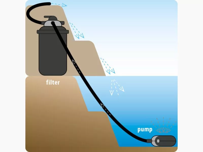 A nyomásszűrős kialakítás lehetővé teszi, hogy a víz a szűrés után magasabb szintre is visszajusson, így kiváló megoldás vízesésekhez, patakokhoz és szökőkutakhoz is.