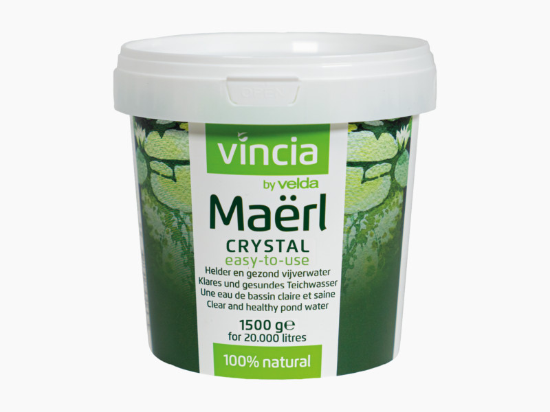 A Vincia Maërl Crystal természetes termék, nagyon alacsony foszfáttartalommal rendelkezik. Kiválóan alkalmas új tavak építésére és a zavaros víz tiszta és egészségessé tételére. A Vincia Maërl Crystal növeli a tóvíz általános keménységét és aktiválja a mikroorganizmusok fejlődését. Nagyon könnyen használható. Szórd a granulátumot egyenesen a tóba.