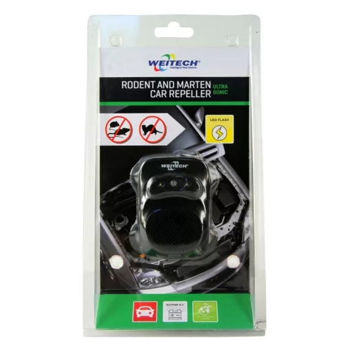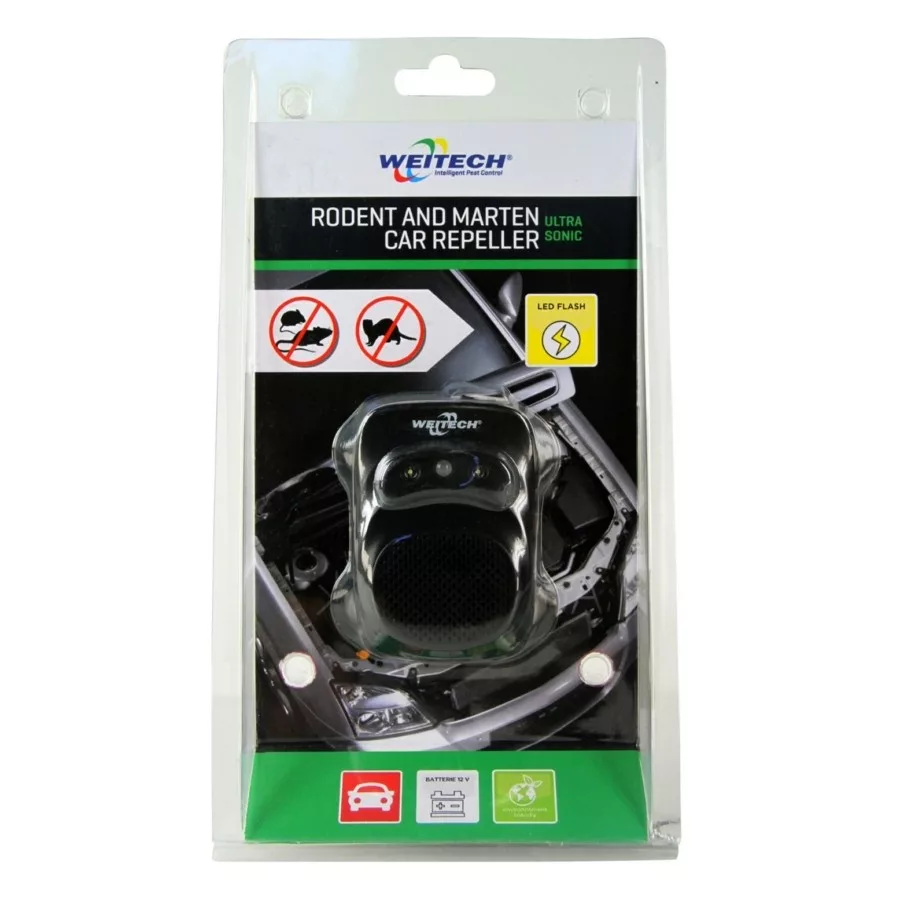 Ultrahangos jelek kibocsátásával és villanó fénnyel távol tartja az autójától menyéteket, nyesteket, egereket, patkányokat stb.