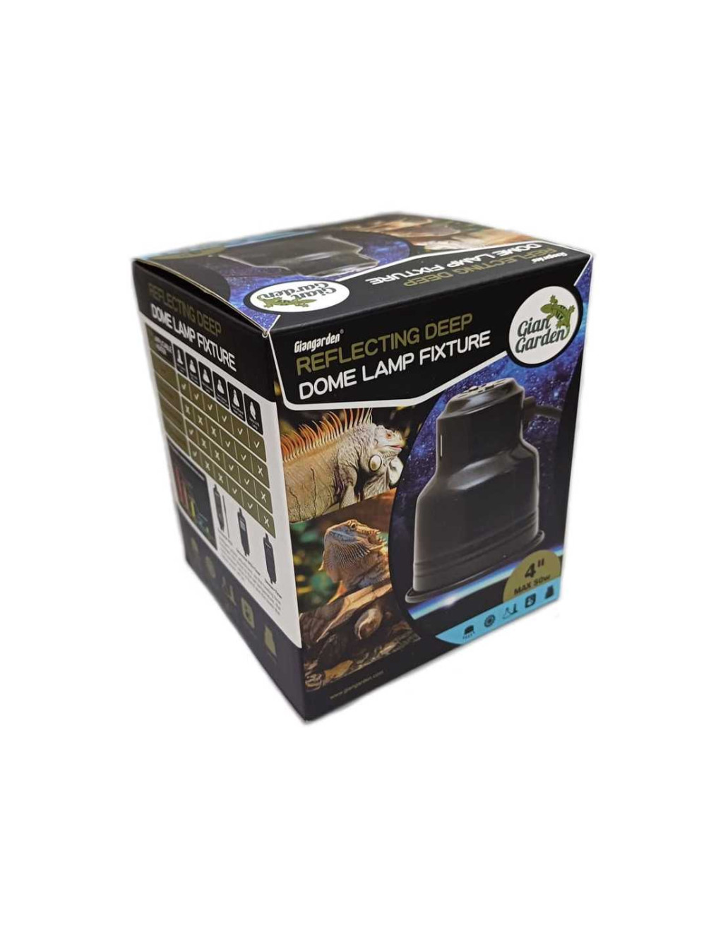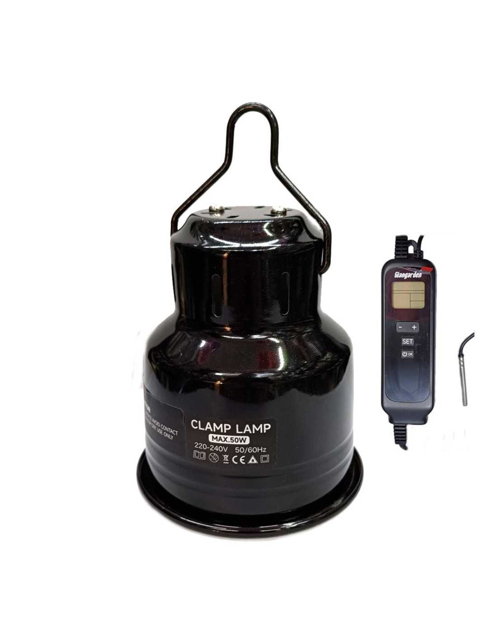 Giangarden terráriumi lámpabura kerámia izzófoglalattal. Minőségi alumínium szoknyájának fényvisszaverő belseje nem csak a fényerősséget maximalizálja, de az UVB sugárzást is növeli akár 80%-kal. A kerámia foglalat ellenáll a hőhatásnak, amit a bura tetején kialakított szellőzés is csökkent. Fém akasztóval ellátott, így rugalmasabb elhelyezés biztosított. Digitális vezérlővel és hőérzékelő szondával felszerelt, így az általunk beállított időszakban a hozzá megadott hőmérséklet eléréséhez szükséges fényerővel világít. A vezeték hosszúsága 180cm. A lámpabura teljes méretei 11,4*11,4cm, a foglalat max. 50W teljesítményű E27 izzó működtetésére képes. Mindig ellenőrizd a használni tervezett izzó leírásában, hogy az alkalmas-e fényerőszabályozásra.