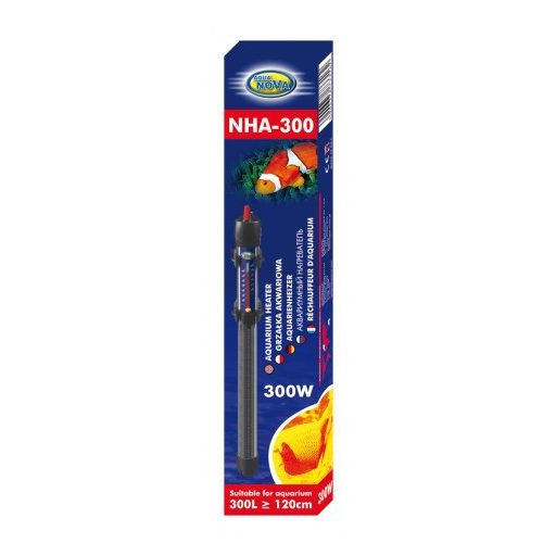 Aqua Nova akváriumi automata fűtő. Kvarcüveg fűtőrúd könnyen beállítható termosztáttal. A fűtőszál elején látható skála segítségével egyszerű a kívánt hőmérséklet beállítása 20-32°C között. Az akváriumvíz hőmérsékletét 1°C körüli pontossággal tartja. LED indikátora jelzi, mikor üzemel épp a fűtőszál. A csomagban foglalt tapadókorongokkal rögzíthető az akvárium üvegfalán. Teljesen elmeríthető, vízalatti használatra készített berendezés. Biztonságos, megbízható, hosszú élettartamú. Ajánlott 250-300 literes akváriumhoz.