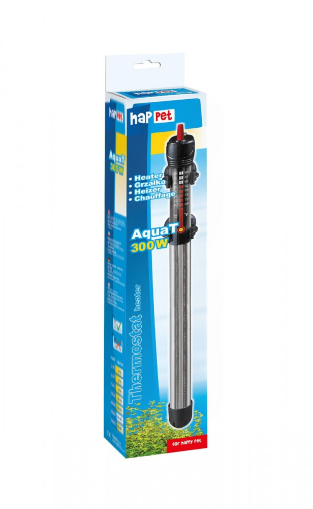Happet AquaT automata akvárium fűtő. Precíz bimetál érzékelővel ellátott akvárium fűtő. A beállított értéken tartja az akváriumvíz hőmérsékletét. Könnyen beállítható a kívánt hőfok 20 és 34°C között, a jól látható skála segítségével. Teljesen vízálló, biztonságos eszköz. Teljesítménye 300W; 200-300 literes akváriumhoz ajánlott; 34cm hosszú.