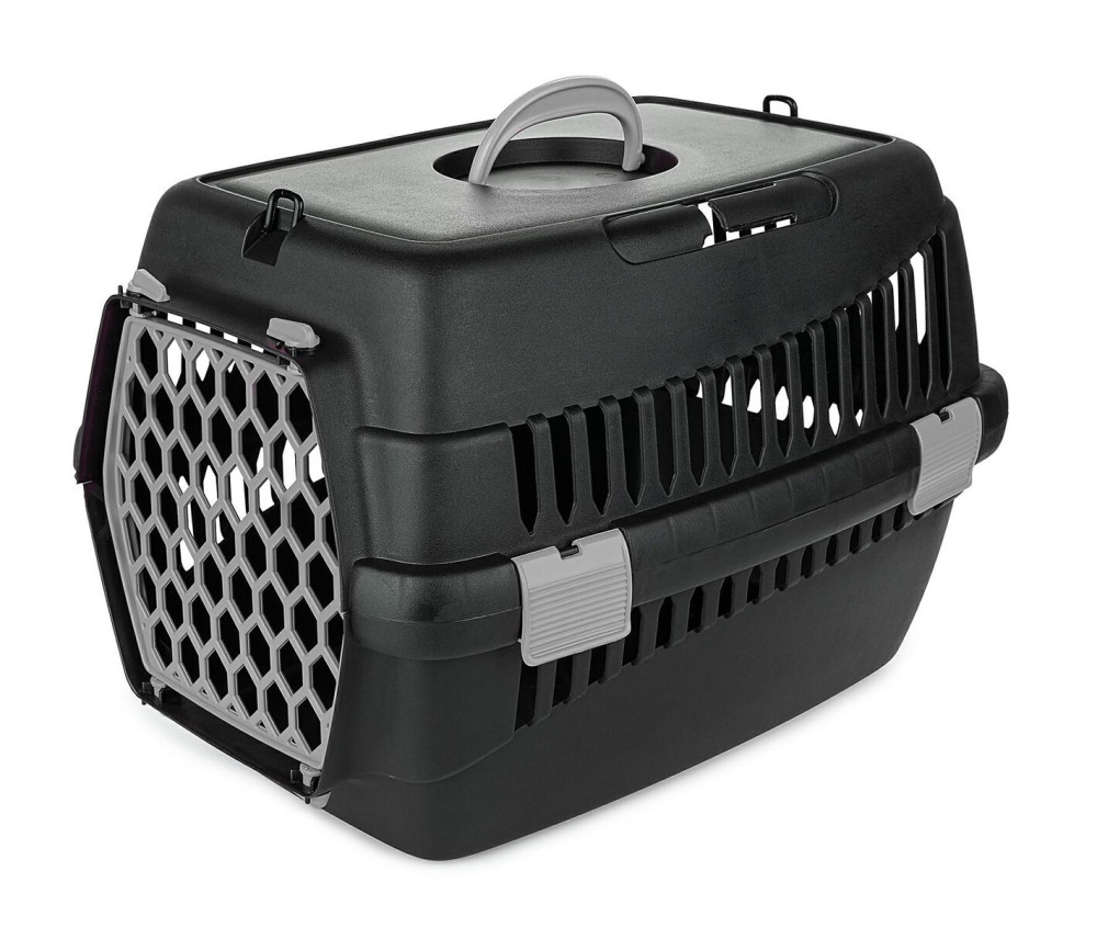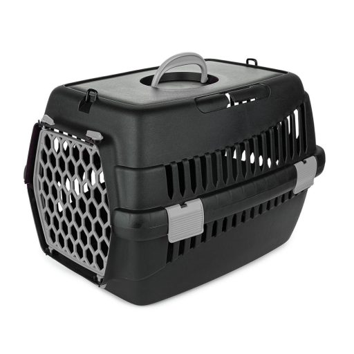 A Happet Teddy S kisállat szállító box, strapabíró, biztonságos műanyagból készült szállító doboz kisebb kutyák, valamint macskák vagy nagyobb rágcsálók szállításához. Ideális megoldás, ha kiskedvencünket állatorvoshoz kell szállítani, vagy hosszabb útra visszük magunkkal. Kényelmes markolatú fogantyújával könnyen cipelhető, tetején vállpánt felcsatolására alkalmas akasztók találhatók (vállpántot a termék NEM tartalmaz). Autóban biztonsági övvel rögzíthető. Ideális szellőzést biztosít a rácsos oldalfalaknak és az ajtónak köszönhetően, ez utóbbi könnyen nyitható bármelyik irányba, vagy teljesen is leszedhető. Erős rögzítő pántjai stabilan összetartják a doboz alsó és felső felét, viszont szükség esetén lehetővé teszik a könnyű szétszedést. Teljes méretei 50*33*33 cm.